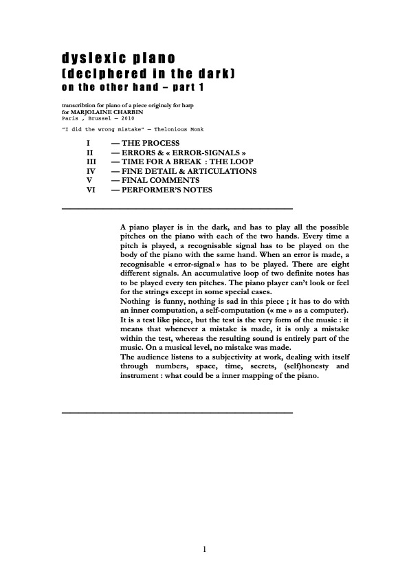 transcription for piano of a piece originaly for harp for Marjolaine Charbin Paris , Brussel – 2010